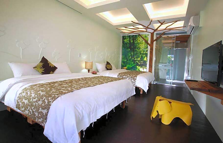 Other features include non-smoking rooms, soundproofing, free toiletries, and on-site parking. A garden and playground add family-friendly touches, making it a playful base for exploring Yilan.